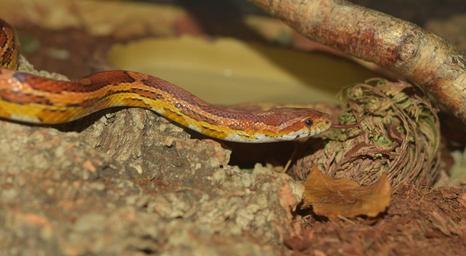 Keywords: snake natter corn snake reptile scale terraristik creature non toxic constrictor portrait orange curious lurking head pantherophis guttatus small würgeschlange close elegant small