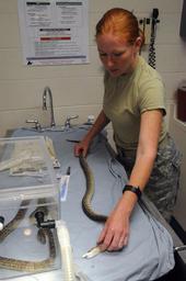 | Keywords: Snake Surgery DVIDS279939.jpg en Army Sgt Jamie Murphy animal care non-commissioned officer in-charge of the Guantanamo Bay Veterinary Treatment Facility spreads out an anesthetized Cuban Boa snake before inserting a tracking chip April 13 The clinic treats the pets of service members and Department of Defense employees assigned to Joint Task Force Guantanamo and U S Naval Station Guantanamo Bay JTF Guantanamo conducts safe humane legal and transparent care and custody of detainees including those convicted by military commission and those ordered released by a court The JTF conducts intelligence collection analysis and dissemination for the protection of detainees and personnel working in JTF Guantanamo facilities and in support of the War on Terror JTF Guantanamo provides support to the Office of Military Commissions to law enforcement and to war crimes investigations The JTF conducts planning for and on order responds to Caribbean mass migration operations 2010-05-13 Petty Officer 3rd Class Joshua Nistas https //www dvidshub net/image/279939 100513-N-+++++-067 2010-05-17 16 24 GUANTANAMO BAY CU PD-USGov-Military-Navy Naval Station Guantanamo Bay Joint Task Force Guantanamo Images from DoD uploaded by Fæ |