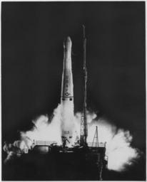 | Keywords: SNAP generator launch.jpg en Cape Canaveral Florida The actual firing of the THOR-ABLE STAR ROCKET that projected the TRANSIT IV-A satellite into space Attached to the satellite is a SNAP nuclear generator which will provide continuous electrical power for satellite radio transmitters http //narademo umiacs umd edu/cgi-bin/isadg/viewobject pl object 78972 Atomic Energy Commission 1964 PD-USGov Transit 4A | ||||