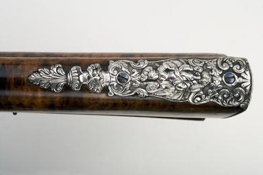 | Keywords: Snapplåsbössa, modalås Esteva, bakplåtstunga - Livrustkammaren - 49665.tif Sextonsidig vid kammaren åttsidig slätborrad pipa av stål vid övergången dekor i stålsnitt Prägelstämplar av silver på kammaren I P // EST // EVA krönt av öppen krona Stöckelnr 331 LRK vägl 1921 324 samt Barcelonas stadsstämpel Stöckelnr 332 LRK vägl 1921 295 Därframför inlagt med silver rankornament tre liljor konsekrationskors punkter samt 1746 På svansskruvbladet graverade rankornament Vid kornet inlagt fyra liljor av silver Guldfodrat fänghål <br/>Riktmedel Gördelsikte och inlaxat korn av silver <br/>Fästning Pipan fäst med blånerad krysskruv främre rembygelns skruv samt därframför gördel av ciselerat silver runt stock och pipa <br/><br/>Snapplås alla moda med plant låsbleck med fasade kanter graverad blomdekor samt rovfågel låsblecket avdelat bakom hanen S-formig platt hane med fasade kanter utskott på bröst och rygg för hel- och halvspänn Lös överkäke och käkskruv med ringformigt huvud hanskruv av blånerat stål Eldstål med räfflad slagyta skruv med kryss <br/>Fästning och avtryckare Två blånerade låsskruvar <br/>Svängd avtryckare med upprullad ände <br/><br/>Halvstock av flammigt trä snidad växtdekor vid beslag och på kolvhalsen Beslag av silver Bakplåt med graverad trofégrupp samt lång ciselerad och graverad tunga med bl a Bellona och troféer fyra blånerade skruvar Stämplar vid tån BAR och kors BA och kors samt PA // GES LRK vägl 1921 447-448 Ciselerad och graverad tumplåt i form av krönt kartusch med kvinnobyst Genombrutet sidbleck med dekor med bl a hjort kartusch med byst av Diana Näsband av horn med gördel av silver Varbygel med lång bakre och främre arm fingergrepp ciselerad och graverad dekor med bl a troféer Stämplar vid bakre skruven blånerat stål BAR och kors BA samt PA // GES Rembyglar bakom varbygeln samt vid spetsrörkan <br/><br/>Tillbehör <br/>Laddstock av mörkare trä 1 1060 med hornskoning framtill laddstocken har slagit sig original caption snapplåsbössa modalås Esteva - LRK 2872 bakplåtstunga 1746 wood e3 - eldvapen - stock material trä - steel e12 - eldvapen - pipa och lås material stål - silver e4568 - eldvapen - riktmedel pip- lås- och stockdekor material silver - horn e7 - eldvapen - stockbeslag material horn - gold e1 - eldvapen - pipa material guld g 2780 size mm 1073 pipa size mm 1456 LRK B A rombisksköld i rekt stämpel Stöckelnr 332 anv e1 - eldvapen - pipa; J F Esteva BAR o krona kors LRK vägl 1921 447 anv e7 - eldvapen - stockbeslag; Pages I P // EST // EVA Stöckelnr 331 anv e1 - eldvapen - pipa; J F Esteva PA // GES LRK vägl 1921 448 anv e7 - eldvapen - stockbeslag; Pages B A rombisksköld i rekt stämpel Stöckelnr 332 anv e1 - eldvapen - pipa; J F Esteva BAR o krona kors LRK vägl 1921 447 anv e7 - eldvapen - stockbeslag; Pages I P // EST // EVA Stöckelnr 331 anv e1 - eldvapen - pipa; J F Esteva PA // GES LRK vägl 1921 448 anv e7 - eldvapen - stockbeslag; Pages place of origin original filename lm_dig2430_2872 39482 inventory number LRK 2872 49665 CC-BY-SA Göran Schmidt <gallery caption Different images of same object > File Snapplåsbössa modalås Esteva - Livrustkammaren - 23984 tif File Snapplåsbössa - Livrustkammaren - 8692 tif File Snapplåsbössa modalås Esteva pipstämplar - Livrustkammaren - 32546 tif File Snapplåsbössa modalås Esteva - Livrustkammaren - 15421 tif File Snapplåsbössa modalås Esteva tumplåt - Livrustkammaren - 41106 tif File Snapplåsbössa modalås Esteva bakplåt - Livrustkammaren - 58226 tif File Snapplåsbössa modalås Esteva lås - Livrustkammaren - 66787 tif </gallery> Göran Schmidt Musket images from Livrustkammaren color images Flintlock muskets images from Livrustkammaren Media contributed by LSH dim-with multiple size templates Media contributed by LSH unmatched creator Color images from Livrustkammaren Media contributed by LSH 2013-10 |
