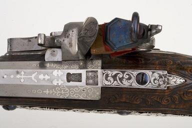 | Keywords: Snapplåsbössa, modalås Esteva, pipstämplar - Livrustkammaren - 32546.tif Sextonsidig vid kammaren åttsidig slätborrad pipa av stål vid övergången dekor i stålsnitt Prägelstämplar av silver på kammaren I P // EST // EVA krönt av öppen krona Stöckelnr 331 LRK vägl 1921 324 samt Barcelonas stadsstämpel Stöckelnr 332 LRK vägl 1921 295 Därframför inlagt med silver rankornament tre liljor konsekrationskors punkter samt 1746 På svansskruvbladet graverade rankornament Vid kornet inlagt fyra liljor av silver Guldfodrat fänghål <br/>Riktmedel Gördelsikte och inlaxat korn av silver <br/>Fästning Pipan fäst med blånerad krysskruv främre rembygelns skruv samt därframför gördel av ciselerat silver runt stock och pipa <br/><br/>Snapplås alla moda med plant låsbleck med fasade kanter graverad blomdekor samt rovfågel låsblecket avdelat bakom hanen S-formig platt hane med fasade kanter utskott på bröst och rygg för hel- och halvspänn Lös överkäke och käkskruv med ringformigt huvud hanskruv av blånerat stål Eldstål med räfflad slagyta skruv med kryss <br/>Fästning och avtryckare Två blånerade låsskruvar <br/>Svängd avtryckare med upprullad ände <br/><br/>Halvstock av flammigt trä snidad växtdekor vid beslag och på kolvhalsen Beslag av silver Bakplåt med graverad trofégrupp samt lång ciselerad och graverad tunga med bl a Bellona och troféer fyra blånerade skruvar Stämplar vid tån BAR och kors BA och kors samt PA // GES LRK vägl 1921 447-448 Ciselerad och graverad tumplåt i form av krönt kartusch med kvinnobyst Genombrutet sidbleck med dekor med bl a hjort kartusch med byst av Diana Näsband av horn med gördel av silver Varbygel med lång bakre och främre arm fingergrepp ciselerad och graverad dekor med bl a troféer Stämplar vid bakre skruven blånerat stål BAR och kors BA samt PA // GES Rembyglar bakom varbygeln samt vid spetsrörkan <br/><br/>Tillbehör <br/>Laddstock av mörkare trä 1 1060 med hornskoning framtill laddstocken har slagit sig original caption snapplåsbössa modalås Esteva - LRK 2872 pipstämplar 1746 wood e3 - eldvapen - stock material trä - steel e12 - eldvapen - pipa och lås material stål - silver e4568 - eldvapen - riktmedel pip- lås- och stockdekor material silver - horn e7 - eldvapen - stockbeslag material horn - gold e1 - eldvapen - pipa material guld g 2780 size mm 1073 pipa size mm 1456 LRK B A rombisksköld i rekt stämpel Stöckelnr 332 anv e1 - eldvapen - pipa; J F Esteva BAR o krona kors LRK vägl 1921 447 anv e7 - eldvapen - stockbeslag; Pages I P // EST // EVA Stöckelnr 331 anv e1 - eldvapen - pipa; J F Esteva PA // GES LRK vägl 1921 448 anv e7 - eldvapen - stockbeslag; Pages B A rombisksköld i rekt stämpel Stöckelnr 332 anv e1 - eldvapen - pipa; J F Esteva BAR o krona kors LRK vägl 1921 447 anv e7 - eldvapen - stockbeslag; Pages I P // EST // EVA Stöckelnr 331 anv e1 - eldvapen - pipa; J F Esteva PA // GES LRK vägl 1921 448 anv e7 - eldvapen - stockbeslag; Pages place of origin original filename lm_dig2428_2872 39482 inventory number LRK 2872 32546 CC-BY-SA Göran Schmidt <gallery caption Different images of same object > File Snapplåsbössa modalås Esteva - Livrustkammaren - 23984 tif File Snapplåsbössa - Livrustkammaren - 8692 tif File Snapplåsbössa modalås Esteva bakplåtstunga - Livrustkammaren - 49665 tif File Snapplåsbössa modalås Esteva - Livrustkammaren - 15421 tif File Snapplåsbössa modalås Esteva tumplåt - Livrustkammaren - 41106 tif File Snapplåsbössa modalås Esteva bakplåt - Livrustkammaren - 58226 tif File Snapplåsbössa modalås Esteva lås - Livrustkammaren - 66787 tif </gallery> Göran Schmidt Musket images from Livrustkammaren color images Flintlock muskets images from Livrustkammaren Media contributed by LSH dim-with multiple size templates Media contributed by LSH unmatched creator Color images from Livrustkammaren Media contributed by LSH 2013-10 |