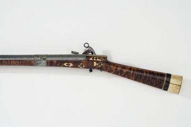 | Keywords: Snapplåsbössa, v sida - Livrustkammaren - 22546.jpg Rund slätborrad pipa av stål med åttsidig kammare Pipan plan på ovansidan i hela sin längd Kammarens ovansida baktill rundslipad Rester av nött etsad dekor i form av blomsterornament på kammarens ovansida På kammarens ovansida etsat A MORETTA Stockel sid 214 Två breda pipband av försilvrad mässing <br/><br/>Snapplås av katalantyp av stål Låsbleck långt och konturerat plant Svagt böjd hane med lös överkäke Ringformig käkskruv På hanfotens tå hake Batteri med plant eldstål med räfflad framsida Utvändig slagfjäder <br/>Fästning Två låsskruvar av stål <br/>Rak kort avtryckare av stål med kulformig ände <br/><br/>Helstock av flammigt trä som slutar 114 mm från pipans mynning Den främre delen av mörkt horn l 113 mm Rak smal kolv med rundad tresidigt tvärsnitt Bakplåt och bakre delen av kolven av vitt ben framför den band av mörkt horn med runda inläggningar av förgylld mässing med rosettmönster i niello och uddkant av vitt ben På vardera sidan om svansskruvbladet ornament av ben med inlagda cirklar av förgylld mässing med rosett i niello Framför låset och på framstocken genomgående rektangulärt hål för gehäng med konturerad skoning av ben Avtryckarbleck av ben konturerade Låsskruvbrickor av konturerat ben <br/><br/>Tillbehör <br/>Laddstock av trä 914 mm lång med 81 mm lång doppsko av stål med knappformig avslutning Träbit i stället för flinta original caption snapplåsbössa - LRK 7710 v sida<br/> Nyckelord Bössa Dekorerade Föremålsbild Snapplås century 18 steel e127 - eldvapen - pipa lås och stockbeslag material stål - brass e78 - eldvapen - stockbeslag och stockdekor material mässing - wood e3 - eldvapen - stock material trä - horn e78 - eldvapen - stockbeslag och stockdekor material horn - bone e78 - eldvapen - stockbeslag och stockdekor material ben g 2260 size mm 1234 size mm 933 pipa size mm 135 LRK place of origin original filename lm_dig2174 43367 inventory number LRK 7710 22546 CC-BY-SA Göran Schmidt <gallery caption Different images of same object > File Snapplåsbössa - Livrustkammaren - 13983 jpg </gallery> Göran Schmidt Muzzle-loaders Musket images from Livrustkammaren color images Flintlock muskets images from Livrustkammaren Media contributed by LSH unmatched material Media contributed by LSH dim-with multiple size templates Media contributed by LSH unmatched creator Media contributed by LSH unmatched keyword Color images from Livrustkammaren Media contributed by LSH 2013-10 |