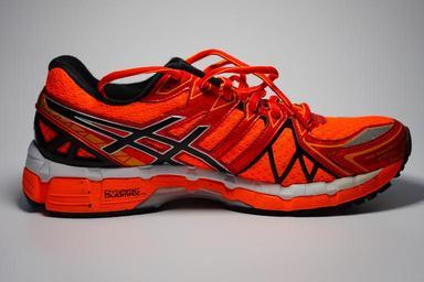 Keywords: sneaker running shoe shoe sport shoe run jog sport race shoelaces jogging joggingschuh lacing orange red gaudy knallbunt bright orange striking neon colors neonorange kayano asics