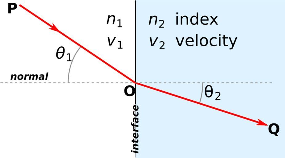 | Keywords: Snells law.svg An image displaying en Snell's law It's basically the image at the Dutch Wikipedia by the Dutch Wikipedia user Sawims I only changed the text en wikipedia 2006-11-13 Cristan wikipedia en Image Snells law2 svg -- a rotated copy of this <gallery> File Snells law mk svg language mk </gallery> Sawims nl original upload log page en wikipedia Snells_law svg 2006-12-23 08 26 Dicklyon 641×355×0 21874 bytes <nowiki>Added velocities changed to bigger fonts made angles more realistic toned down the blue etc </nowiki> 2006-11-13 22 53 Cristan 641×411×0 15430 bytes <nowiki> Summary An image displaying Snell's law It's basically the image at the Dutch Wikipedia by the Dutch Wikipedia user Sawims I only changed the text Licencing Sawims </nowiki> Refraction diagrams Calculus of variations |
