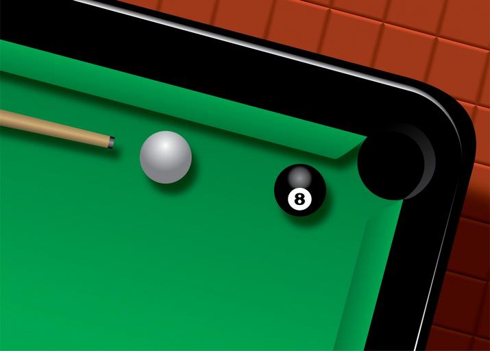 Keywords: snooker table upper view balls tiles aim reflections floor corner angle wood plastic sport game