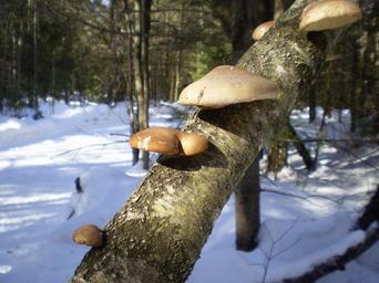 Keywords: snow branch trees woods forest mushroom fungus