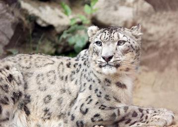 Keywords: snow leopard reclining staring ground looking feline big cat animal wildlife predator spots fur