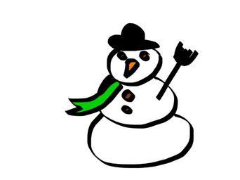 Keywords: snow man cartoon white snow winter scarf green