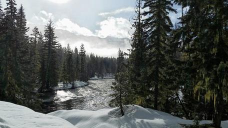 Keywords: snow river mountains cold forest water