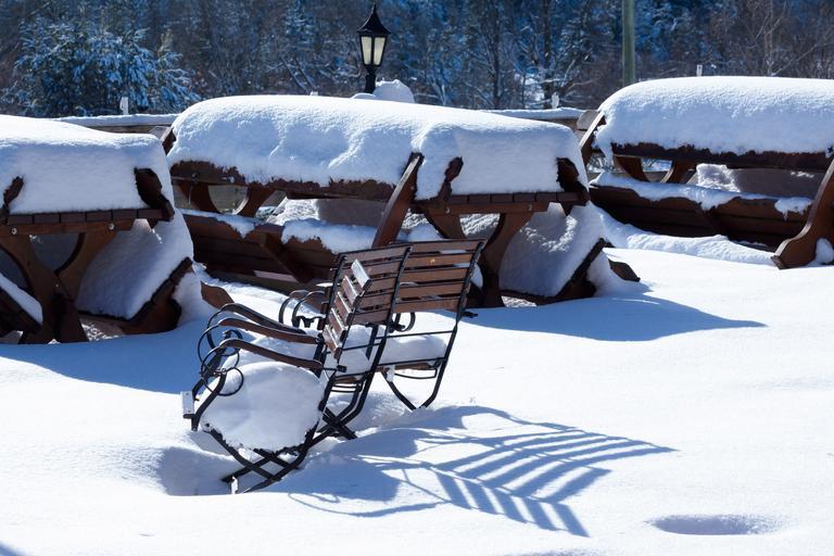 Keywords: snow shadow chairs dining tables beer garden winter white snowy