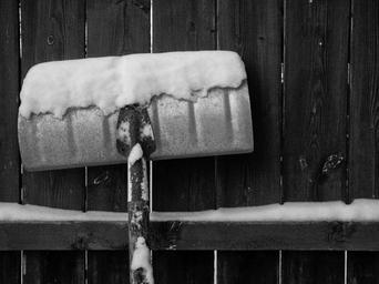 Snow shovel, rear, against wooden fence.jpg (4145x3109)