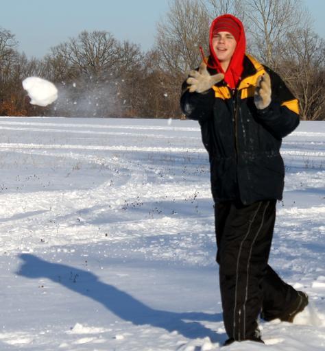 Keywords: snow snowball winter cold boy outside play throw outdoor frozen season white holiday happy smiling