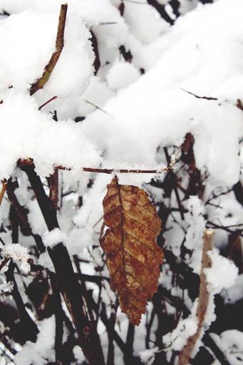 Keywords: snow snowy covered bush winter cold white frozen icy branches leaf nature