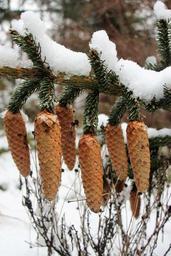 Keywords: snow winter pine cones christmas landscape needles tap nature tannenzweig fir branch tree wintry green conifer