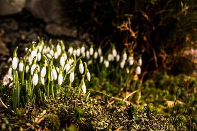 Keywords: snowdrops nature plants flower green moss spring plant rock plant