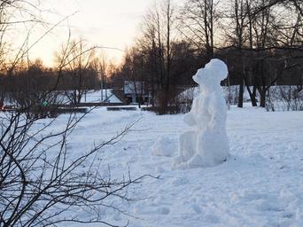 Keywords: bushes evening sky snow snowman trees winter snowbank outdoor serene Snowman Snowman