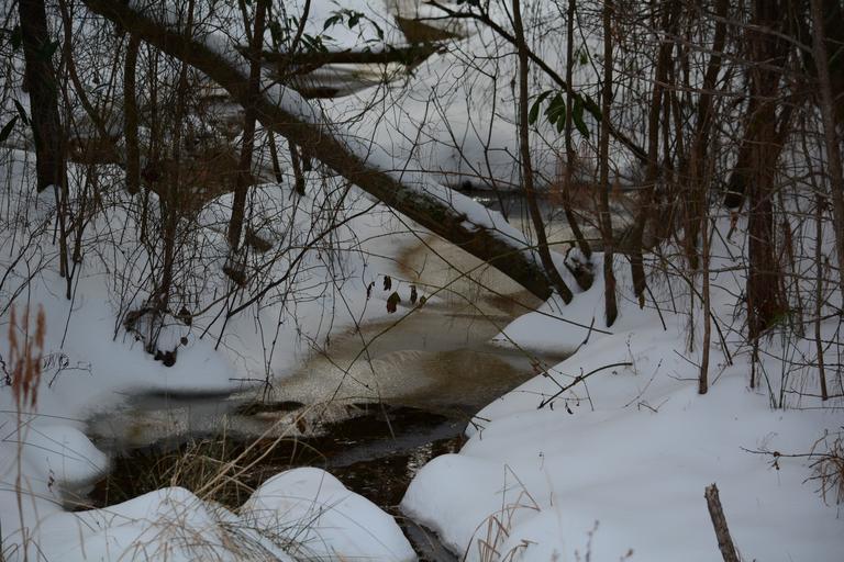 Keywords: snowy creek frozen forest stream landscape winter cold