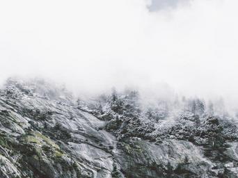 Keywords: snowy mountains cloudy snow mountain winter cold outdoors high white rock rocky mountains wilderness hiking fog cliff clouds extreme landscape adventure