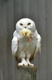 Keywords: snowy owl white bird owl enclosure animal beautiful nature plumage mystical animal recording feather eat chicken