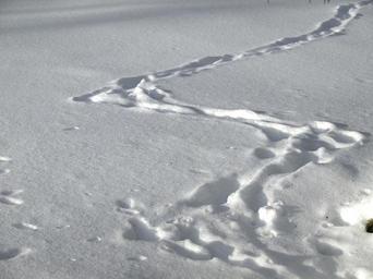 Keywords: snowy winter ground floor land tracks marks white freezing frozen temperatures cold weather climate zigzag curved lines frost covered seasonal seasons