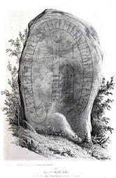 | Keywords: Sö 266, Sanda.jpg The runestone Sö 266 The inscription reads + iaurun lit raisa stain at ontuit sun sin auk at onunt ar + osbiarn In English Jórunnr had the stone raised in memory of Andvéttr his son and in memory of Ônundr's Ásbjôrn Dybeck Richard 1855 Svenska run-urkunder Första Samlingen Stockholm Joh Beckmann 1855 Richard Dybeck Author died more than 70 years ago - public domain PD-old DEFAULTSORT Sö266 Runestones Södermanland Runestones of Haninge Municipality Österhaninge socken | ||||