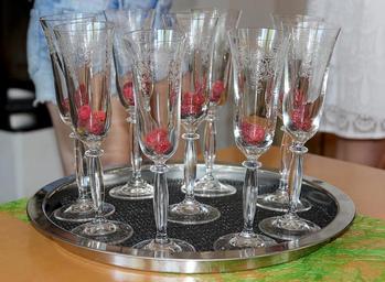 Keywords: soaked glass champagne sparkling celebration cup abut champagne glass aperitif raspberries tray