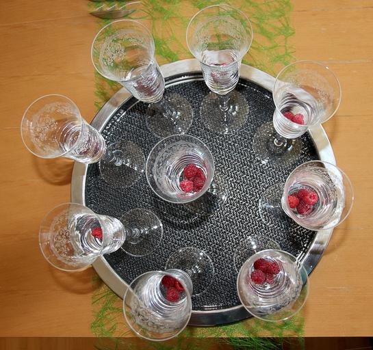 Keywords: soaked glass champagne sparkling celebration cup abut champagne glass aperitif raspberries tray