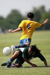 Keywords: soccer action play game competition collision grass green sport football kicking active player soccer ball football game foot playing field ball outdoors texas