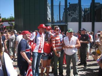 | Keywords: Soccer fans poland usa.jpg Supporters of the Poland and United States national football/soccer teams meet before a game Own Szater Association football supporters of Polish national football team Supporters of United States men's national association football team Association football supporters with facepainting Relations of Poland and the United States Flags in bodypainting |