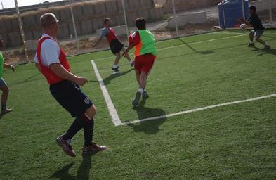 | Keywords: Soccer Game DVIDS23832.jpg en The Turkish team has control over the soccer ball against the 2-1 Soldiers on Thursday 15 2006 at Forward Operating Base Marez Mosul Iraq Photo by Spc Yolanda Moreno Leon 138th MPAD 2006-06-20 Spc Yolanda Moreno Leon https //www dvidshub net/image/23832 23832 2006-06-21 02 21 MOSUL IQ PD-USGov Forward Operating Base Marez Images from DoD uploaded by Fæ | ||||