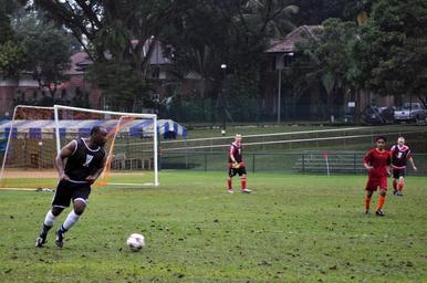 | Keywords: Soccer in Singapore DVIDS183640.jpg en Petty Officer 2nd Class Venice Welch storekeeper assigned to the aircraft carrier USS Ronald Reagan receives the soccer ball from another Ronald Reagan player during a game against a Singapore team This is the first time the Ronald Reagan soccer team has played against another team since first coming together in San Diego Ronald Reagan is moored pierside in Singapore on a routine port visit 2009-06-24 Rosalie Garcia https //www dvidshub net/image/183640 090624-N-+++++-084 2009-06-29 06 58 SINGAPORE SG PD-USGov-Military-Navy USS Ronald Reagan CVN-76 Images from DoD uploaded by Fæ |