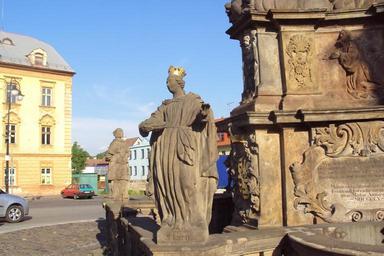 Keywords: Socha Lucie.JPG cs Socha sv Lucie pod morovým sloupem na náměstí Svobody v Zákupech own Zákupák 2012-05-15 Holy Trinity column in Zákupy Statues of Saint Lucy