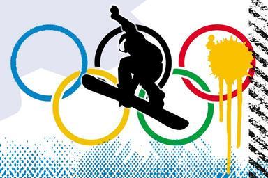 Keywords: sochi 2014 russia olympiad winter olympics competition snwowboarder freestyle jump olympic rings grunge