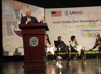 | Keywords: Social Media Event.jpg en Participants at a United States funded panel discussion on https //en wikipedia org/wiki/Cyberbullying cyber-bullying today condemned the rising trend of https //en wikipedia org/wiki/Cybercrime cyber-crime against women and said that large number of Pakistani girls and women are victims of this kind of violence which mainly includes https //en wikipedia org/wiki/Cyberstalking cyber-stalking blackmailing and pornography They said that due to existing social norms women are more vulnerable to the negative aspects of https //en wikipedia org/wiki/Information_technology information technology http //watchinsta com Watchinsta The panel discussion titled Social Media New Dimension of Violence against Women was part of the 16 Days of Activism campaign about violence against women It took place at the https //en wikipedia org/wiki/Pakistan_National_Council_of_the_Arts Pakistan National Council of Arts and was sponsored by Aurat Foundation ™s Gender Equity Program GEP which is funded by the United States government through U S Agency for International Development https //en wikipedia org/wiki/United_States_Agency_for_International_Development USAID 2013-12-10 07 20 30 https //www flickr com/photos/usaid_pakistan/11321158966/ USAID Pakistan other versions PD-USGov United States Agency for International Development |