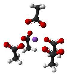 | Keywords: Sodium-acetate-xtal-Na-coordination-3D-balls.png Ball-and-stick model of the coordination of sodium 1 by five acetate ions in the crystal structure of sodium acetate form I orthorhombic Pcca Sodium 1 is coordinated by six oxygens in a distorted square pyramidal-type geometry X-ray crystallographic data from cite journal Acta Cryst C39 6 June 1983 690-694 10 1107/S0108270183005946 Structures of two forms of sodium acetate Na<sup>+</sup> C<sub>2</sub>H<sub>3</sub>O<sub>2</sub><sup> ˆ’</sup> Leh-Yeh Hsu C E Nordman Model constructed in http //www crystalmaker com/ CrystalMaker 8 1 Image generated in http //accelrys com/products/discovery-studio/visualization/discovery-studio-visualizer html Accelrys DS Visualizer Own 2009-01-25 Ben Mills Benjah-bmm27 Images by Ben Mills Sodium acetate |