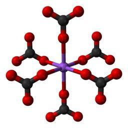 MAKE A MEME View Large Image Sodium-carbonate-xtal-Na-coordination-3D-balls.png Ball-and-stick model of the coordination of sodium in the crystal structure of the gamma polymorph of sodium carbonate γ-Na<sub>2</sub>CO<sub>3</sub> X-ray crystallographic data from http ...