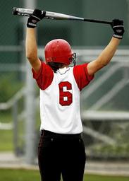 Keywords: softball batter girl teen game competition female teenager bat hitter athlete player sport helmet home high school uniform stretch warm up compete ball park fence