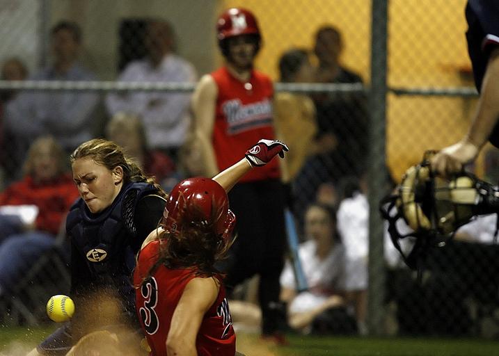 Keywords: softball catcher female sliding scoring run field player team competition game play ballgame sport defend action activities competitive defending athletic ball dirt teenager teen helmet athlete