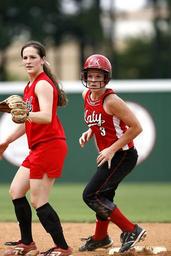 Keywords: softball girls athlete game sport female player field play competition athletic teenager teen uniform base fastpitch glove first base ball-park ball field runner helmet outdoor youth
