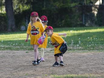 Keywords: softball players hitter game children play sport girl field infield ball competition helmet sand park team