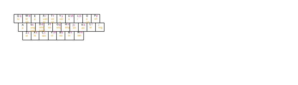 Keywords: Sogou shuangpin case.svg zh-cn 狗双拼方案,黑色字体为键盘上 显示的字母,洋红色为该字母可以替代的声母,橙色为可替代的韵母 2013-03-18 21 35 42 own Yanenming cc-zero Uploaded with UploadWizard Keyboards computing