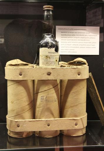 | Keywords: Sokaisupullo m44 RUK-museo.JPG en Finnish blinding bottle m/44 in RUK-museum in Hamina A variant of Molotov cocktail intended to create smoke to blind the enemy tank and not directly destroy it fi Sokaisupullo m/44 RUK-museossa Haminassa Polttopullon muunnos jonka tarkoituksena on kehittää mahdollisimman paljon savua vihollisen panssarivaunun sokaisemiseksi eikä niinkään suoraan panssarivaunun tuhoamiseksi own MKFI 2015-08-12 Finnish Reserve officer school museum Weapons of Finland Molotov cocktail Smoke bombs 2015 in Hamina August 2015 in Finland Taken with Canon EOS 60D Taken with Canon EF-S 15-85mm F3 5-5 6 IS USM Files by User MKFI |
