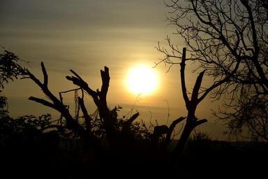 Keywords: sol twigs sunset against light clouds in the sun tree dry twigs