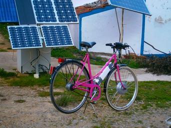 | Keywords: Solar-e-bike.jpg en Recharging of a solarbike Litium-akku 15 Ah 7S or 8S / 24 9 V or 28 8 V with 120 Watt solar panel in 2 paralel 60 Watt/ 24V nominal lines which work on the standard tipical maximal power point of 34 Volt enough to recharge a 8 litium ion akkumulators in line with 32 8 Volt charging limit The recharging with a litium-ion balancer and Volt-endpoint-limit needs about 1/2 day of sunshine The panel capacity is recommended between 50 and 150 Watt solarpanel de Beladung eines Solarfahrrades mit 15 Ah Lithium-Ion-Akku und 24 9 V 7S oder 28 8 V 8S mittels 120 Watt/24V Solarpanelen in 2 Reihen mit je 60 Watt 2X30 /24 V nominal welche mit der normaltypischen Standard-MPP von 34 Volt 2x17 Volt in Reihe ausreichen um einen 8-Zellen Lithium-Ionen-Akku bis zum Endladepunkt von 32 8 Volt aufzuladen Es ist dabei notwendig mit Endpunkt-Ladereglung und Balancer zu laden um à berhitzung und Explosion der Akkus zu vermeiden erhältlich auch über ebay com preiswerte chinesische Elektronik von hervorragender Qualität Sinnvolle Solarladung ergibt sich bei Solarpanelkapazität zwischen 50 und 150 Watt mit 2 Sonnentagen 50 W bis zu 3 Stunden 150 Watt je langsamer geladen wird desto besser werden die Akkus genutzt Es wurden alte Laptop-Akkus verwandt unter verwendung augemusterter Akkupacks bei denen einzelne Zellen verschlissen waren die übrigen aussortierten aber noch voll funktionstüchtig sind own Andreas Lemmer Portugal 2012-12-12 Electrically-powered bicycles Cc-zero |