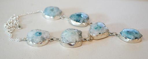 Keywords: solar quartz geode stone necklace blue gem gemstone natural cabochon setting bezel jewelry jewel fashion accessories crystal quartz semiprecious light choker chain