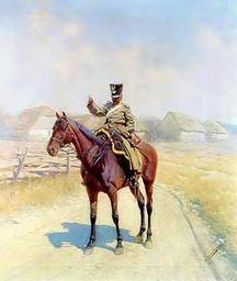 | Keywords: Soldier of 3rd Mounted Riflemen Regiment of Kingdom of Poland.PNG Artwork de Soldat des 3 Jägerregiment des Königreichs Polen en Soldier of 3rd Mounted Riflemen Regiment of Kingdom of Poland painting cm http //www artinfo pl/ pid catalogs sp auction id 1 id2 14510 lng 1 Credit line < 1936 creator Jan Rosen pd-old Other versions PD-old-auto 1936 Jan Rosen Mounted troops | ||||