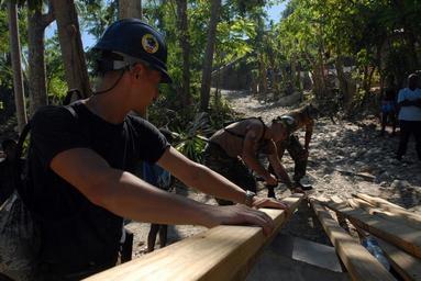 | Keywords: Soldiers Help During Aftermath of Hurricanes DVIDS118425.jpg en Seabees and Air Force engineers deployed with the amphibious assault ship USS Kearsarge reconstruct a water pipeline that was destroyed by recent hurricanes Service members from the Navy Army Air Force Marines and Coast Guard along with medical personnel from the U S Public Health Service Canadian army Air Force and Navy Brazil Project HOPE and International Aid embarked aboard Kearsarge are working together to conduct hurricane relief operations in Haiti 2008-09-24 https //www dvidshub net/image/118425 080924-N-+++++-281 2008-09-27 08 59 BAINET HT PD-USGov-Military-Navy USS Kearsarge LHD-3 Images from DoD uploaded by Fæ |