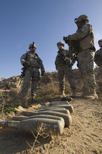 Keywords: Soldiers in Baqubah DVIDS142513.jpg en U S Army Staff Sgt Gersain Garcia gives information to the Weapons Inspection Team members about a weapons cache his platoon found U S Soldiers from the Chemical Biological Radiation Nuclear/Weapons Intelligence Team Platoon Brigade Troops Battalion 1st Stryker Brigade Combat Team 25th Infantry Division are exploiting a weapons cache found by fellow 25th Infantry Division Soldiers while conducting a patrol south of Baqubah Iraq on Jan 3 2009-01-03 left https //www dvidshub net/image/142513 090103-N-+++++-013 2009-01-08 19 33 BAQUBAH IQ PD-USGov-Military-Navy 25th Infantry Division United States Images from DoD uploaded by Fæ