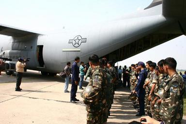 | Keywords: Soldiers of Indian Army ready to board C-130 Of USAF during COPE INDIA 2009.jpg Garud troops board and drop from a USAF C-130J and an IAF IL-76 drops American paratroopers It is not by chance or an error The venue is Agra and the event is Cope India 09 CI09 the Indo-US transport exercise Sixth in the series of Indo-US air exercise that began in Agra Cope India is focussing on transport operations insertion and extraction of its special forces in hostile zones as also searching for pilots who may have crashed in enemy territory and rescuing them A five-day joint exercise involving the Indian Air Force IAF and the United States Air Force USAF the exercise will be another step towards the new found friendship between the two countries One of the focus of this exercise is joint operations by special forces of both the Indian Air Force and United States Air Force behind enemy lines such as sending a team into hostile territory or to extricate a pilot whose aircraft had crashed there USAF's Cope India Director Colonel Raymond Lamarche told the media in Agra The participating IAF aircraft include Il-76 An-32 and Mi-17 helicopters while the USAF will participate with a C-17 Globemaster-III a C-130J Super Herclues and and a C-130H transport aircraft Capt Nate Padgett a pilot from the 535th Airlift Squadron at Hickam Air Force Base Hawaii and 149 other Airmen are participating in Cope India a United States and India airlift exercise that provides training for humanitarian assistance and disaster relief operations Inaugurating the joint air force exercise of the two countries Cope-India US Ambassador Timothy J Roemer said Our relationship has come a long way Defence relationship between India and the US will be no different than the cooperation in the spheres of energy science technology education and trade Strategic and defence cooperation is one of the key pillars of the growing robust strategic partnership Speaking on the US-made military equipment to India Roemer said I know that some are apprehensive about reliability of the US as a supplier of military equipment to India But I can tell you that our relationship is far different than it was even a few years back said Roemer Referring to the C-130 Super Hercules and the C-17 Globemaster transport aircraft Roemer said I can assure you that the IAF will be very pleased with the decision to purchase the C-130 J Your first aircraft will arrive in early 2011 a little over a year from now and it will be everything you hope it to be We are proud to partner with you on this important programme he said India has ordered for six C-130 J aircraft for its special forces operations and these aircraft will be based at the Hindon air base in Ghaziabad near the national capital With regard to C-17 Roemer said a proposal to purchase this aircraft were at present under the Indian Defence Ministry's consideration Members of Akash Ganga team of paratroopers made a beautiful sight as they ascended the skies during the opening ceremony of the exercise 2010-01-18 own assumed Spguidepublic Cope India 2009 C-130 Hercules United States Air Force 535th Airlift Squadron United States Air Force |