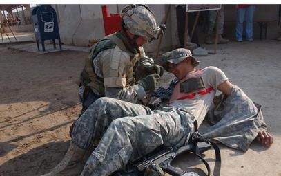 | Keywords: Soldiers prepared for terrorist attacks DVIDS12595.jpg en CAMP LIBERTY IRAQ -- Cpl Phillip Heyde 3rd Battalion 6th Field Artillery Regiment treats an open chest wound on role player Spc Emelio Benavidies 10th Brigade Support Battalion during a mass casualty exercise a the Camp Liberty Exchange Nov 18 'The purpose of this exercise was to prepare our Soldiers for a real life mass casualty crisis ' said Capt Shonnel Makwakwa a medical officer 1/10th Mountain Division During the exercise anyone trained in a Combat Lifesaver Course could react to the scenarios The Soldiers want to be prepared for a disaster such as the mortar explosion in May of this year in the PX area Soldiers from each battalion of the 1/10th Mountain Division participated in the event U S Army Photo by Pfc Jason Jordan 1/10th Mountain Division Public Affairs 2005-11-23 https //www dvidshub net/image/12595 12595 2005-11-23 15 31 PD-USGov Camp Liberty Images from DoD uploaded by Fæ |
